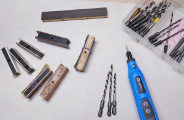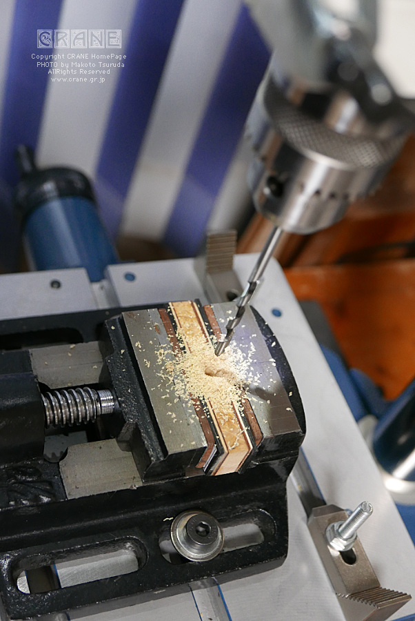 ドリルビットの先ネジを潰してからペグ穴を掘ります.