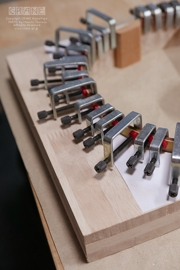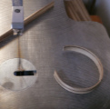 裏板はサウンドホール作業のあとに接着します