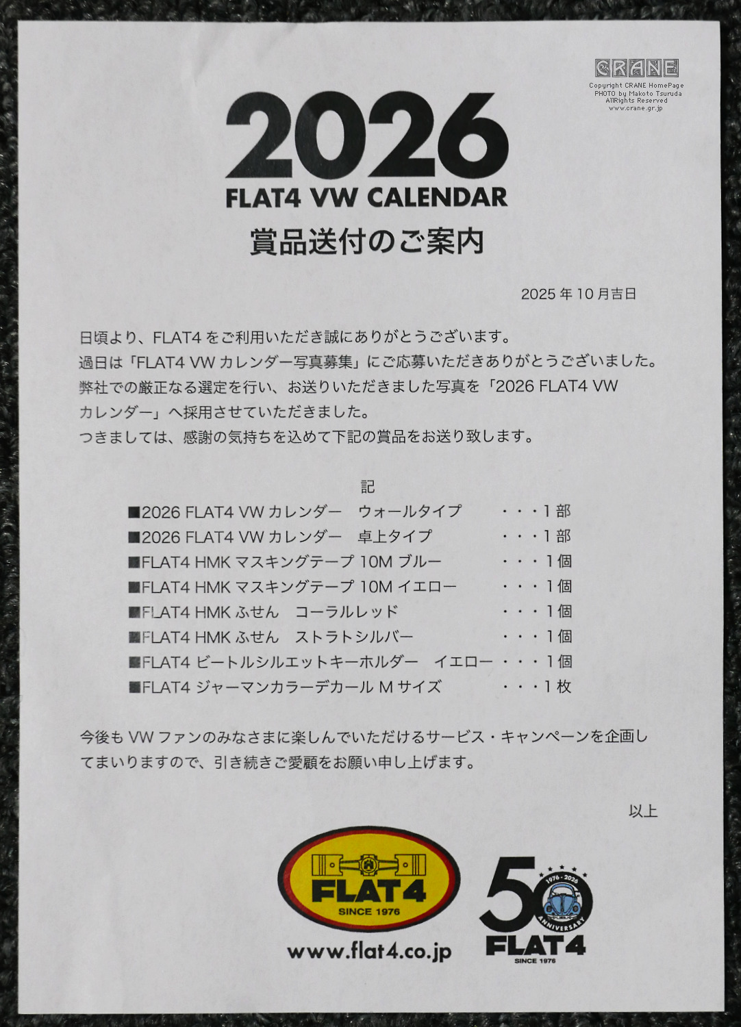 VWカレンダー当選 ... 11/1