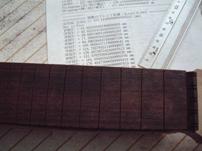 ● 弦長が377ミリに決定したので、クレーンホームページのTSULTRA FRETを利用させて頂き、印刷して使用しているところ.....。