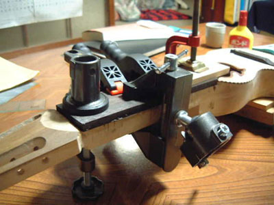 ● こちらはフィンガーボードを接着する工程。
