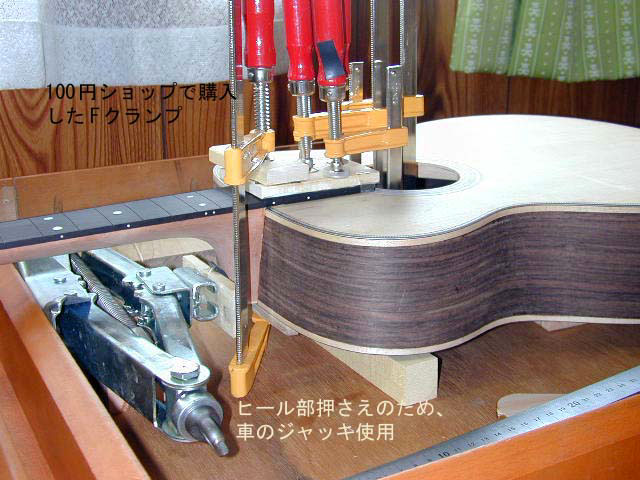 ●自作の治具(スプールクランプ、カムクランプ、ブリッジ押さえ、各種接着作業時のブロック)は合計数千円、また、作業台は、平面度のよい台所机が粗大ゴミの日に落ちていたのを拾ってきたので、タダでした。以上のように、治工具類にはほとんど投資せずに済んだ。