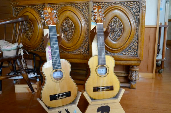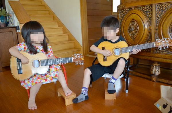 なんかこう、親バカコーナーみたいになってきましたが(笑)、abeさん4作目の投稿です。お孫さんが可愛くて仕方がないのでしょう。モデル名もついにTYPE-Nになってしまいました。楽器はといえば、これが張力や弦長など前作をしっかり継承。表面板の厚み変更がありますが、ネックのVジョイントの工作など立派なものです。桂はこまかい細工をすると破損しやすいのですが、比較的軽い樹種なのでヘッドには好都合かもしれません。ちっちゃくてもビンディングやパーフリング、指板の加工やブリッジの細部までフルサイズと同様に作ってあり、手抜きがありません(塗装はあと一歩といったところでしょうか)。二人のお孫さん、ちゃんと足台を使って弾いているところがイイですな。