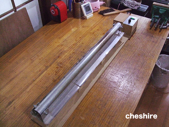 リュートやバロックギターなど作っていると黒檀のべニアをネックに巻く作業が出てくるのですが,市販のベンディングアイロンでは長さが足りず困っていたため,ベンディングアイロンも自作しております。名づけて「スーパーロングベンディングアイロン」。(なんと650mm長!)オーブントースターのヒーターと調光器のキットを組み合わせて作りました。