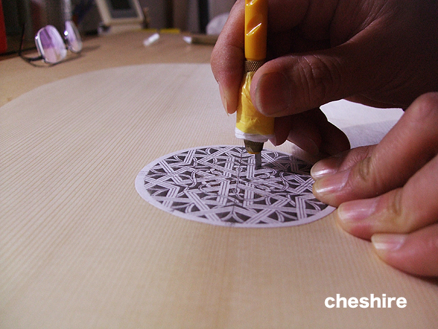 ・写真6:ブリッジの位置決めです。神経を使います。