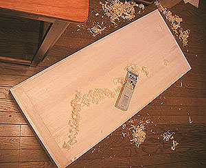 カンナがけを行って完全に閉じた箱をひとまず完成させます。そうです、フタはあとからこの箱をカットして分離しちゃうのです。そうすれば絶対に箱とフタがずれないというワケ......。今回は真剣に作っているわけではなくスピード仕上げでバッチリ機能すれば良いのでこまかいところにはあまり気をつかわないことにしていたのですが、ちょっと出っ張っていたりするとなんとなく気になる私.....。こうやって秋の夜長は更けていくのです。