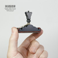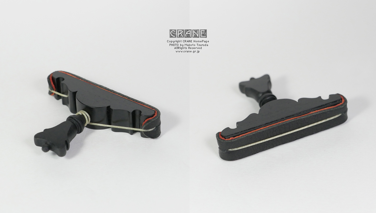 2017年でいったん完成したCRANEカポのシェイプですが、例えばモダンギター用の象牙や黒檀素材では20g前後になることが多いため、今回は贅肉をさらに落としています。また、モダンギターは60mmぐらいの幅広になるため中央の山を両脇へわずかにならし、かわりに触角(ツノ)を少し誇張しています。
