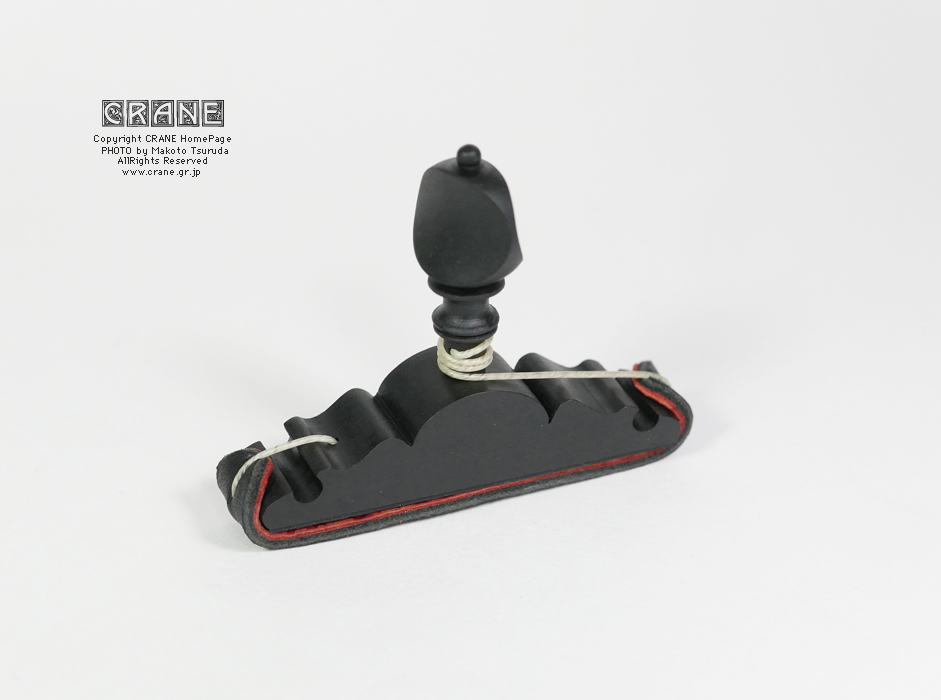 フリクションペグによる鶴田誠の手工品です。基本的に全て天然素材を使っており、プラスチックのたぐいは使用していません。革は革の専門工房のもので、ブランド品の高級バッグなどに使われている良質な皮革です。全体はスペインスタイルですが、鶴田の工房CRANEのオリジナルデザインで、1個づつ手作りしています。過去にいくつかカポを作って御希望の方にお譲りしてきましたが、基本的に同じものはありません。よく似たモデルであってもサイズや素材や装飾やシェイプ、塗装等が微妙に異なります(ソールのサイズによってもデザインを調整しています)。原則注文は受け付けていません(気分により応相談)。基本的にはワンオフの1点モノとなります。工房CRANEの正規品として焼印が刻印されています(モデルによってはデザインを損なわないよう底部に焼印を押しています)。