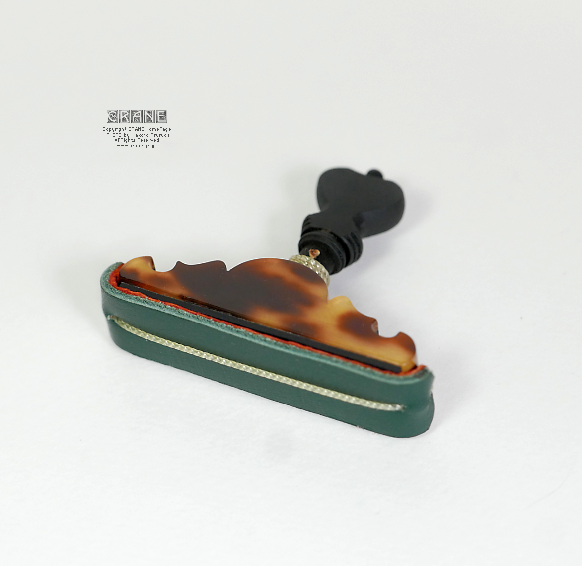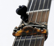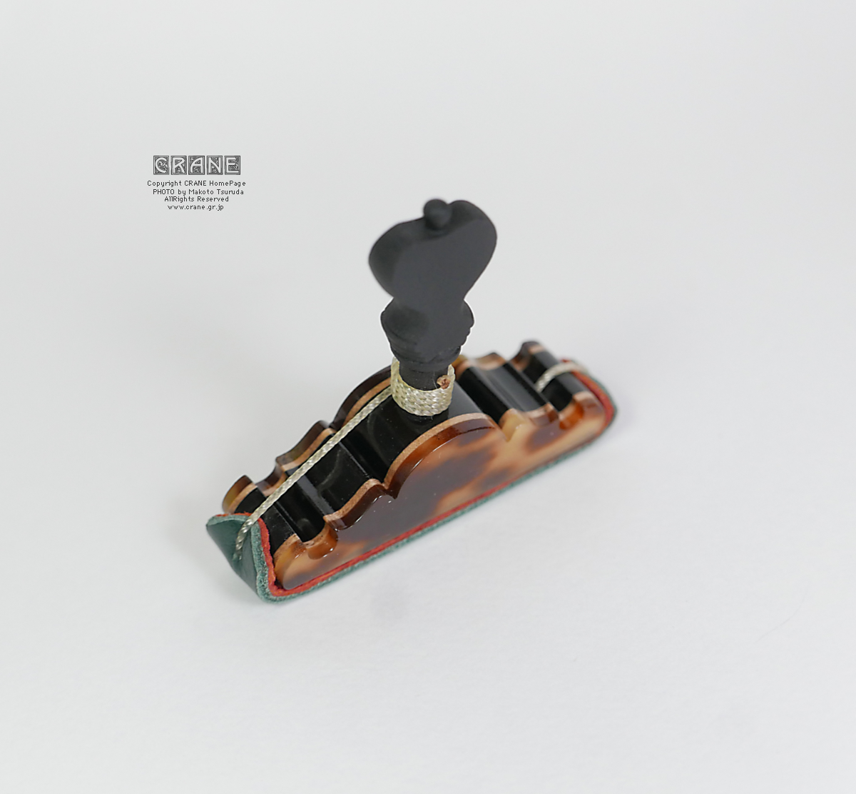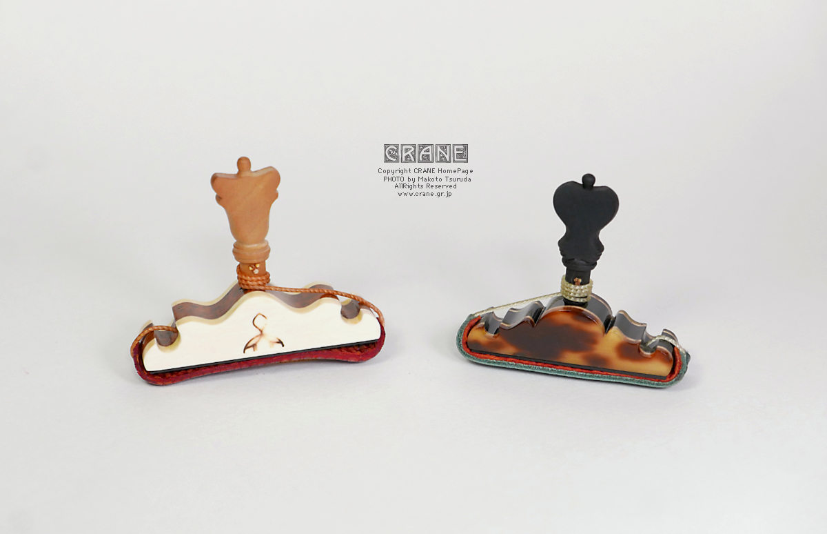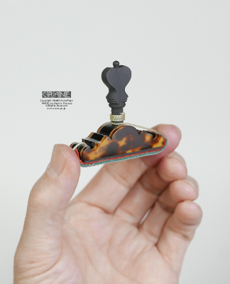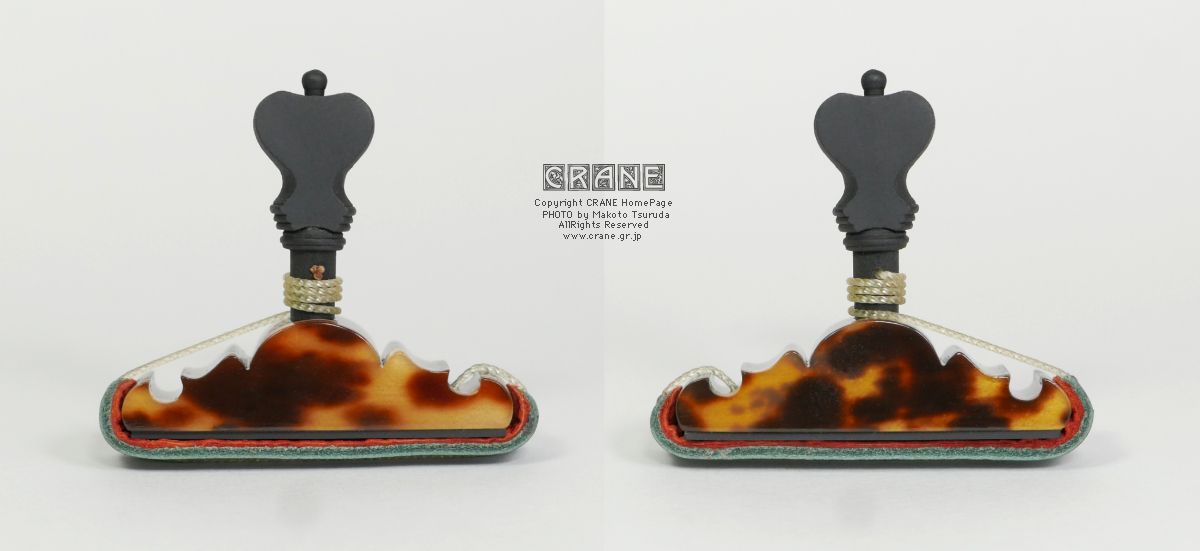 CRANEカポの素材とデザインと加工に御注目ください。三味線の撥と違ってカポタストはそもそもサイズが小さいので文様の大きな鼈甲材料は使いにくいです。今期でベッコウ素材はひとまず終了。また探しておきますがいつ入手できるかは未定ナリ。