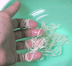 水に浸したまま1時間放置して羊腸をやわらかくもどします。30分でも良いと書かれた商品もありました。