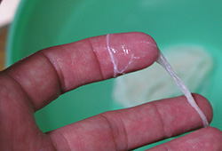 結論から先に述べますと、このようにハーフドライといいますか湿った状態のガットのほうが切れにくいという傾向があります。