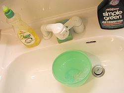 次の写真は洗剤でガットの脂分を洗浄しているところです。