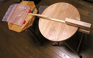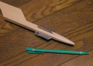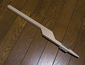 そこに前記の刃を固定して完成! 角材は今回は手元にあったエゾ松にしました、エゾ松はえ〜〜ぞ。