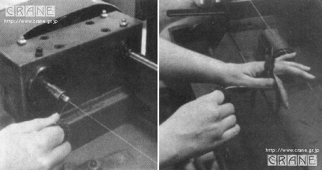 ちなみにギブソン社ではのちに機械で巻くようになったようです(そりゃそうだ......写真の治具に御注目あれ!)。