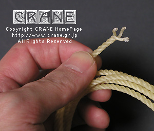 弦を縒るときにかなり強めの張力をかけると結果が良いようです。張力を変えることで最終的な弦の太さもコントロールすることができます。