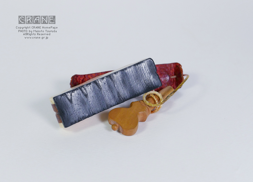 アンボイナと厚い象牙のモデルです。しかもエンジ色のエイ(スティングレー)革ベルトの特別仕様。