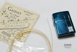 例によって、ガット先端を焼いて丸めるためだけのため にある我が家のZippoライターです。タバコは吸いませんがツールとしてお気に入りです。