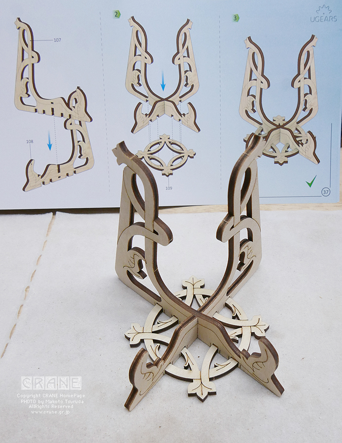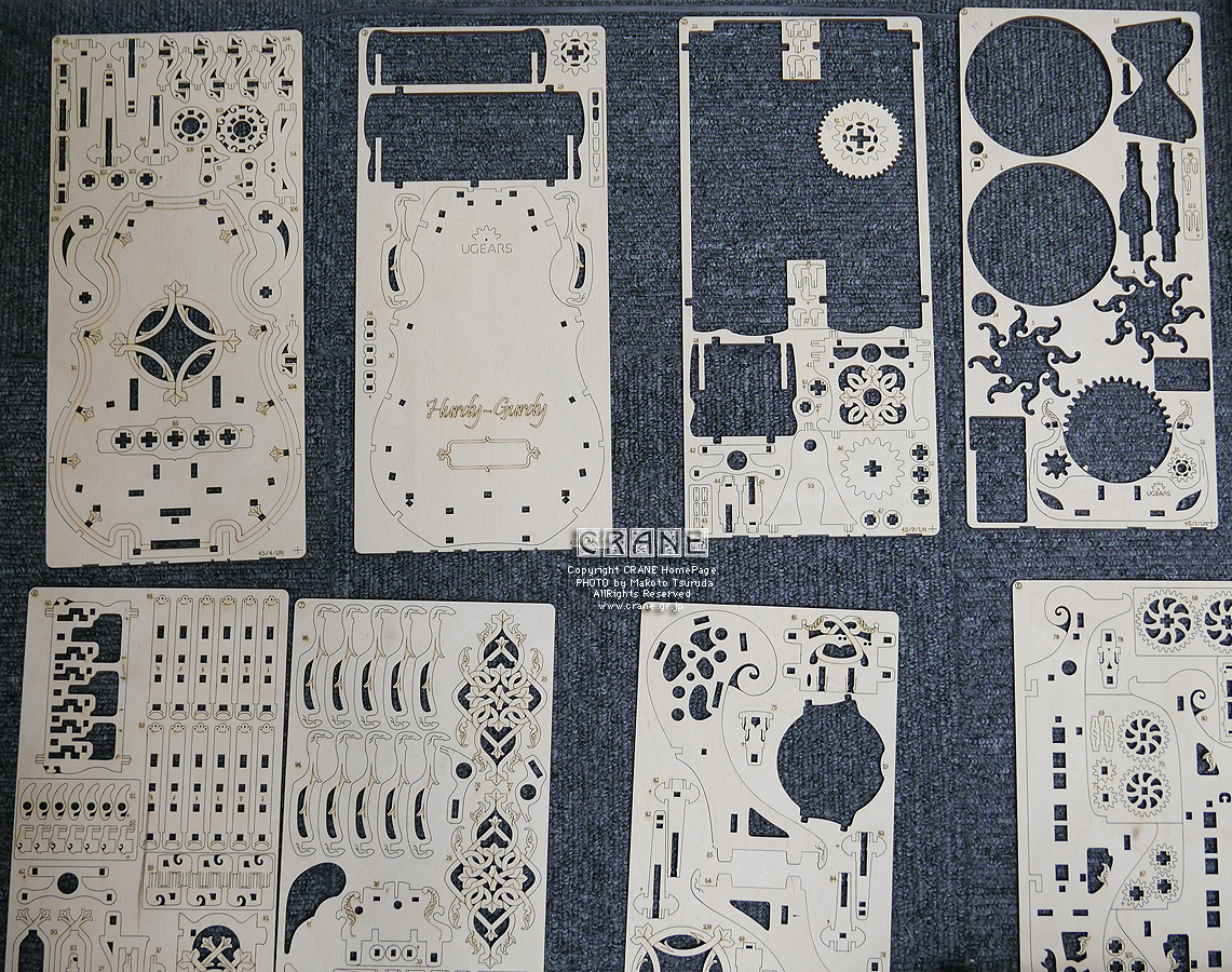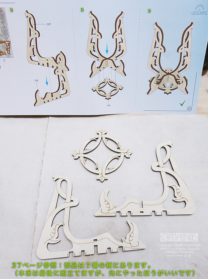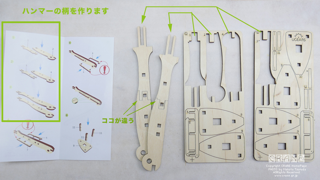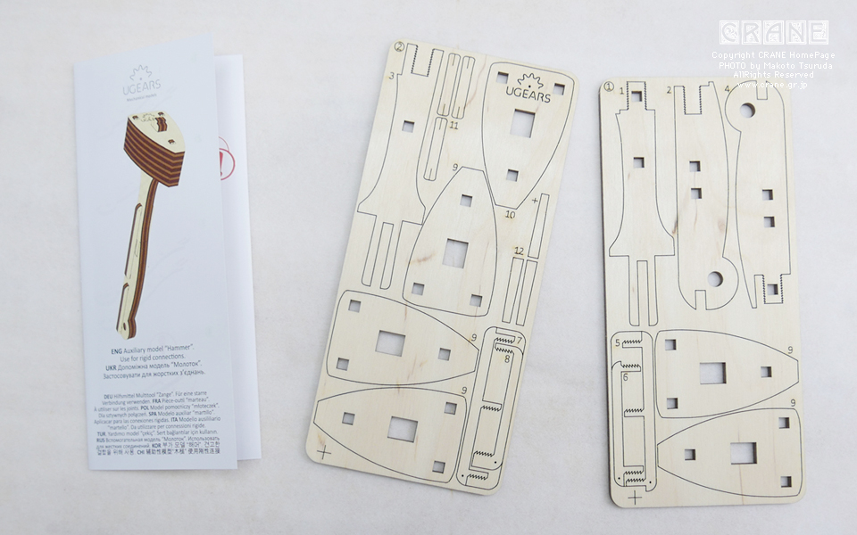ハンマーについては楽器とはまったく別の独立した部品板が用意されていいます。組立説明書もハンマー専用です。このメーカー UGEARS で販売している他のキットにも付属して使えるように開発されたものでしょう。