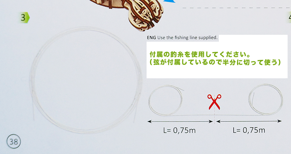 ・付属の釣糸を使用してください。(フロロカーボンの弦が付属しているので半分に切って使う)