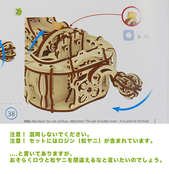 ....と書いてありますが、「ロウと松ヤニを間違えるな」と言いたいのでしょう。