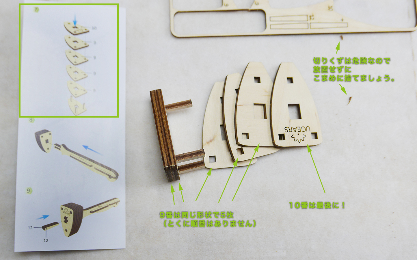 組立説明書はじつによくできていて、とにかく図をよく見て「方向」を確認する習慣をつければミスは起こりにくいです。