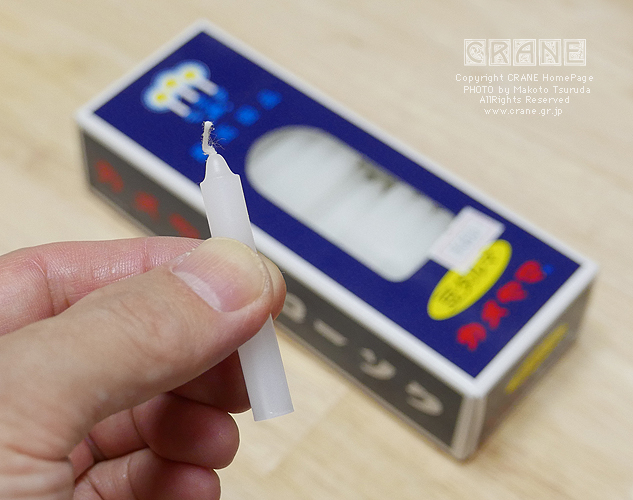 ちなみに付属のロウソクのほかにもっと細いロウソクがあれば作業がはかどります。ウチの工房では非常災害用のちっちゃいロウソク(直径7mm)を常備しています。