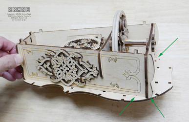 糸巻側には近距離内に4個所の突起と穴があるのでこちらを先に組むといいでしょう。隙間無くキッチリ入るとパキッ!という音がします。