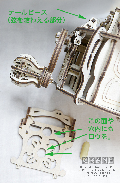 さて、ウギャース社(ホントはたぶんユーギアーズと読むと思う)のハーディガーディ( Hurdy-Gurdy )のキットの続きです。