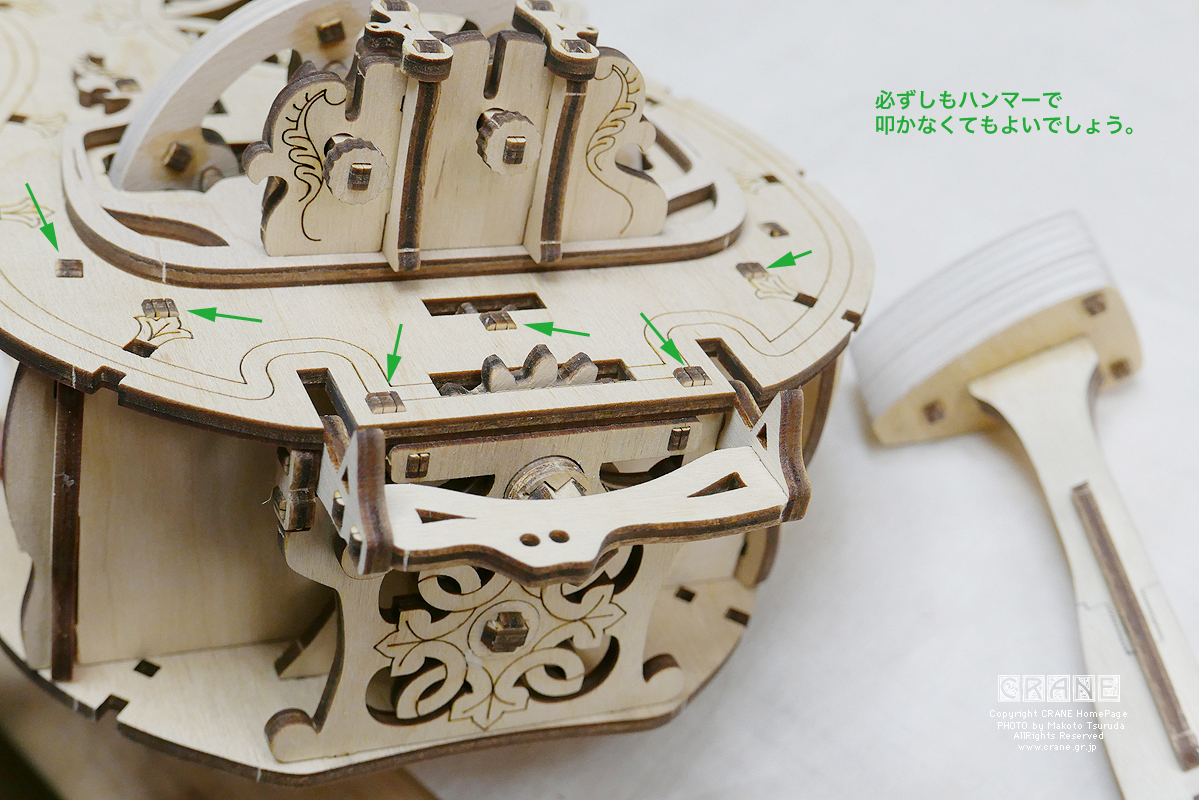 なお、写真にはハンマーが写っていますが、私は握力(指力)だけで組み立てました。