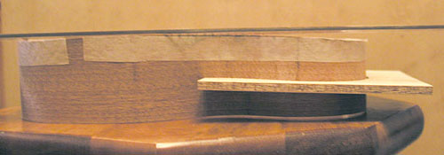 このうち a. は作るのが簡単そうです、 b. は裏板に力を加えて側面に沿わせるのでそこに緊張が発生します。実際の楽器ではこのふくらみの形状や度合いもじつに様々なのです。