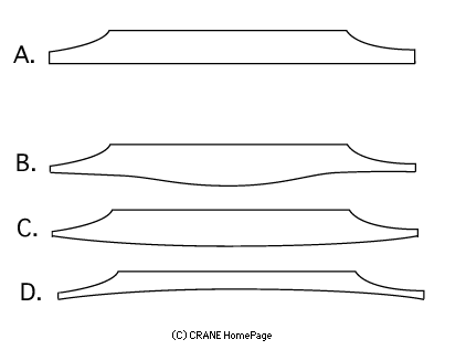 また、多くのギターなどでは C. のようなアーチ(というかドームというか)を持つものが多く、その膨らみの度合いも様々です。