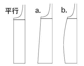 a. 裏板が直線的で(つまり横から見てボディが台形)である場合と、