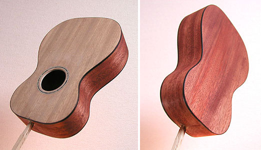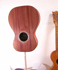 ですが、ここでグッとこらえてボディ塗装に一工夫します(なんだ、また遠回りかぁ〜〜!)。全音社のウクレレキットはマホガニーであるわけですが塗料は付属していません。これはPL法によるもので工作の安全確保の意味でもありますが、ポジティブにとらえれば「色は勝手に決めて良い」ということでもあります。スバラシイじゃありませんか!