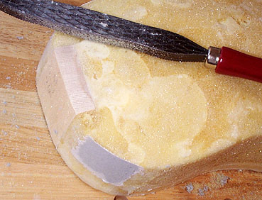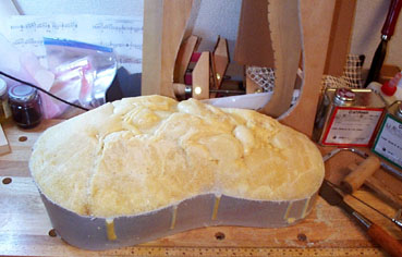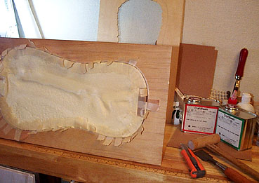 しかしまあ、あわてることもありません。モールドの底部は最初に準備したフレームに沿ってピッタリの形状を保っていますから、これをもとにふくらみを補正していくことにします。
