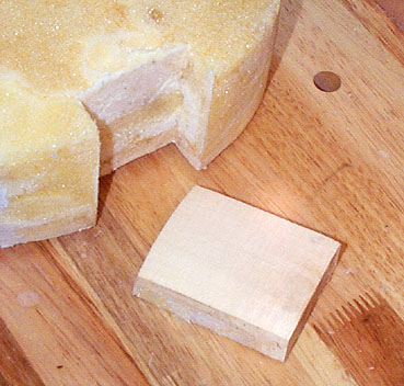 硬化したウレタンモールドからブロックをはがしたところです。カッターを差し込んで、接着されているブロックとウレタンの面を丁寧に切り離します。