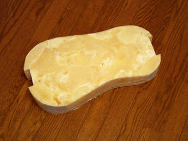 はい、約3時間もあればモールドが完成します。木材の型作りと比較すると発砲ウレタンは柔らかくてもろいので短時間で削りだして成形することが可能であることを確認できました。ああ、やっぱり鶴田は間違っていなかった......コレはすごくらくです。欲をいえばもう少しキメのこまかいレジンにしたいところです。私はこの表面に樹脂塗料を塗って表面を硬化させて使うことにしました。