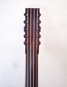 今度はヘッドの加工です。これがまた切って貼って、はいオシマイというわけにもいかず製作過程の写真枚数をみてもかなり手間のかかる作業を行ったことになります.....。今回はバロックギターとしては装飾は控えめで比較的素朴なスタイルなわけですが、それでも作業にとりかかってみると19世紀ギターやモダンなギターよりはるかに時間がかかっています。