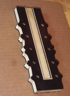 当時のバロックギターはイタリアンの場合、白黒のチェック模様で装飾されることが多かったのですが、特注品のなかには赤海亀(タイマイの仲間)の甲良つまりベッコウをふんだんに使った仕様のものもかなり製作されました。ここではそのほんの一部のマネゴトですが、ベッコウ細工の端材を使って装飾してみることにしました。