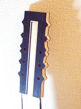ヘッドの側面はバロックギターではよく見られるカーブで彫り抜かれて装飾されます。このカーブにもいくつかのパターンがありますがたいていは左右対象でさらに片方のカーブも対象な部分を持ちながらアレンジしてあるタイプが多いようです。