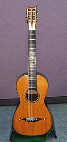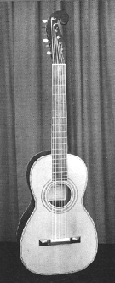 例えば一般に「ギター」といえばみなさんは何を思い浮かべますか?クラシックギター?それともマーチンのドレッドノウトとか?Ovationのアダマスとか?Jazzファンの方にはアーチトップとか?エレキギターはちょっとウチのサイトでは道が逸れてしまいそうです(作ってもいいけど)。欲張っても決まらないのでここはひとまずスチール弦のギターは保留にしておきましょう。まあ、元々マーチンもシュタウファーをお手本に19世紀スタイルのギター(以下のモノクロの写真は1850年頃のマーチン)を作っていましたけど...。今回はガット(ナイロン)弦が優勢....。