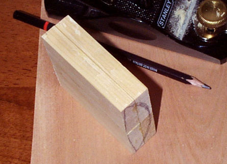 さて、ボディの厚さより若干厚くなるようにスプルースの角材を4つ切り出します。これで上ブロックを作ろうというわけです。たしかに安い材料ですが手間ばかりかかります。こんな余計なことを考えているから私はなかなか作業がはかどらないのです。