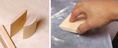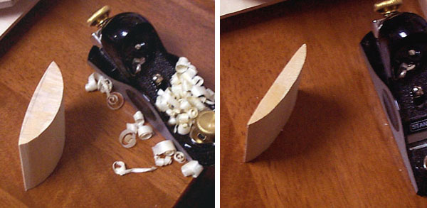 ブロックを図面の形状に合わせてカンナで削って合わせていきます。青焼き(青写真)かコピーがあれば切り抜いてのりで貼り付けてからカンナをかけてもいいでしょう。