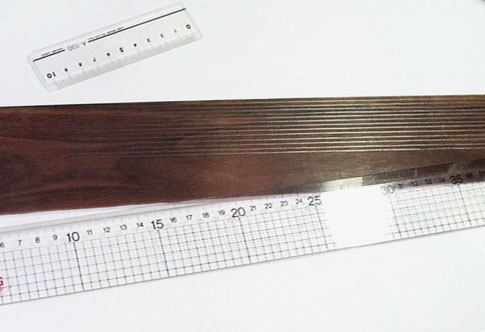 長い黒檀の板を糸のこで切り出し、それをビンディング材とします。やや大きめにカットし接着後にカンナで面を揃えます。