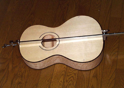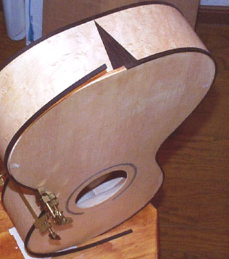 裏板が終わって表面板側のビンディングを接着しているところです。