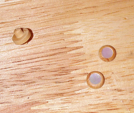 この作業工程はもっとたくさんの写真が撮影してあるのですがキリがないのでこの程度にしておきます。ボタン中央に装着するのは丸い貝です。広い貝の板から切り出してもいいのですが、ここだけ既製品に頼ってもよしとしましょう。最後は黒く着色してやればいいのです。接着は最後の仕上げと調整のときに行います。実際のオリジナルラコートのこの部分もじつは年代やモデルによってはいくつか異なるのです。このコーナーで最初にお見せした写真のラコートのボタンはじつに精巧にできていて二重丸◎とその中心に・を彫り込んであるという凝ったものでした。