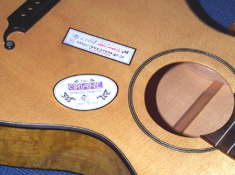 あ、話がそれてしまいましたがラベルはプロの製作家もあれこれと工夫がみられて、それぞれ個性的なものが多いです。反面、手書きとコピーに近いシンプルなものもプロの製作家は使っていたりします。いずれにせよ製作年月日と製作者名ぐらいは書いておくのがエチケットです、そうすることでどれくらいの年月が経過しているかわかりますし、誰が製作したのかを知る手がかりになるからです。百年後まで私の楽器は残っているでしょうか? 「これが20世紀に活躍した伝説のスローハンド製作家、クレーンかっ!」と世間をまどわす、いや、世間で評判になるような楽器になればいいなぁ〜〜、ズズズッ(ヨダレ)。