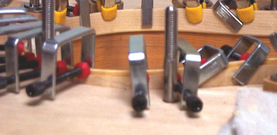 ||| 15. Lining-1 Cut lining edge. Glue the lining to body side. Clamp by many mini clamps. Level smoothing. Oh! SHOGUN!