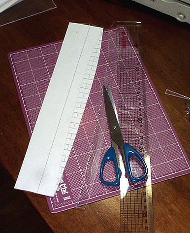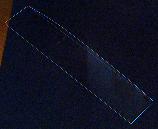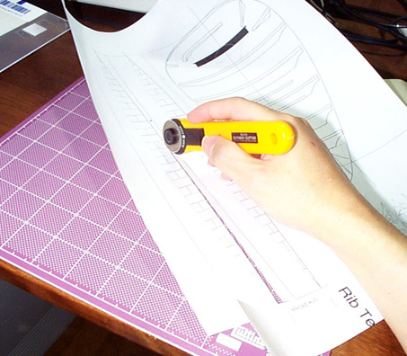 7. ふぅ〜〜〜〜っ。あとはアクリルの板にこれを書き写す(パソコンを使っているならプリントアウト)したものを貼り付けてカッターで丹念に切り抜けば「リブテンプレート」のできあがりです。ちなみにこのリブテンプレートはひっくり返して板に墨入れするので半分(弧の片側)でよいのです