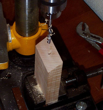 堅いメイプルにハンドバイスで穴を空けるのがたいへんであれば卓上ボール盤を使うというテもありますが、この場合はガッチリ固定してその角度に注意を払う必要があります。