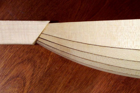 接着面は若干ネック側が高くなるように接着し、あとで表面板との具合をみて削ります。もちょい低くてもよかったかな? ピッタリ接着できたでしょうか?
